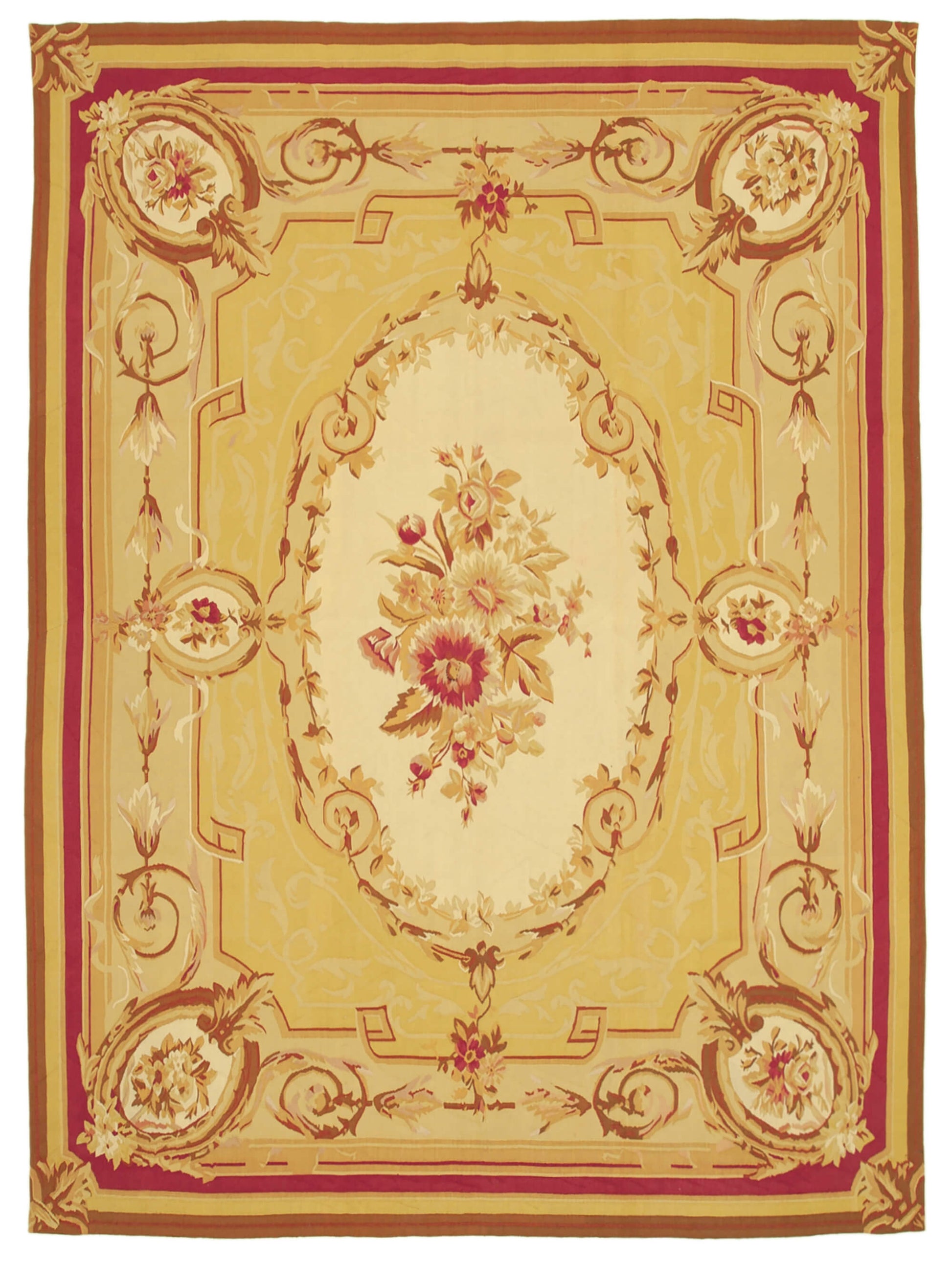 The rug features a stunning palette of yellow and beige tones, creating a warm and inviting atmosphere. The intricate floral patterns are beautifully woven, showcasing the skill and artistry of traditional craftsmanship. The central medallion is adorned with vibrant floral motifs, surrounded by an elegant border that enhances its visual appeal. The harmonious blend of colors and patterns makes this rug a versatile piece that complements both classic and contemporary interiors.